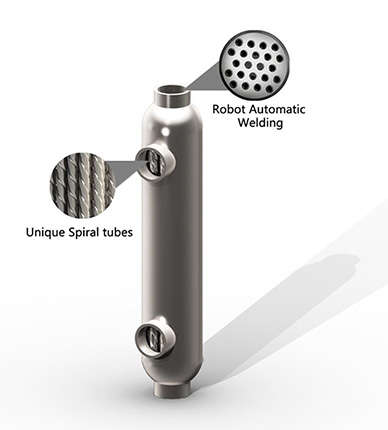 Plate heat exchanger structureIn the actual welding process, a welding point is formed at each contact point between the corrugated plates. The plate type frequency converter contains 2 independent flow channels. The heat exchange medium is introduced into the plate group through the holes formed by the four corners of the flow channel plate and is distributed to the flow channels formed between the corrugated flow channel plates for heat exchange.
